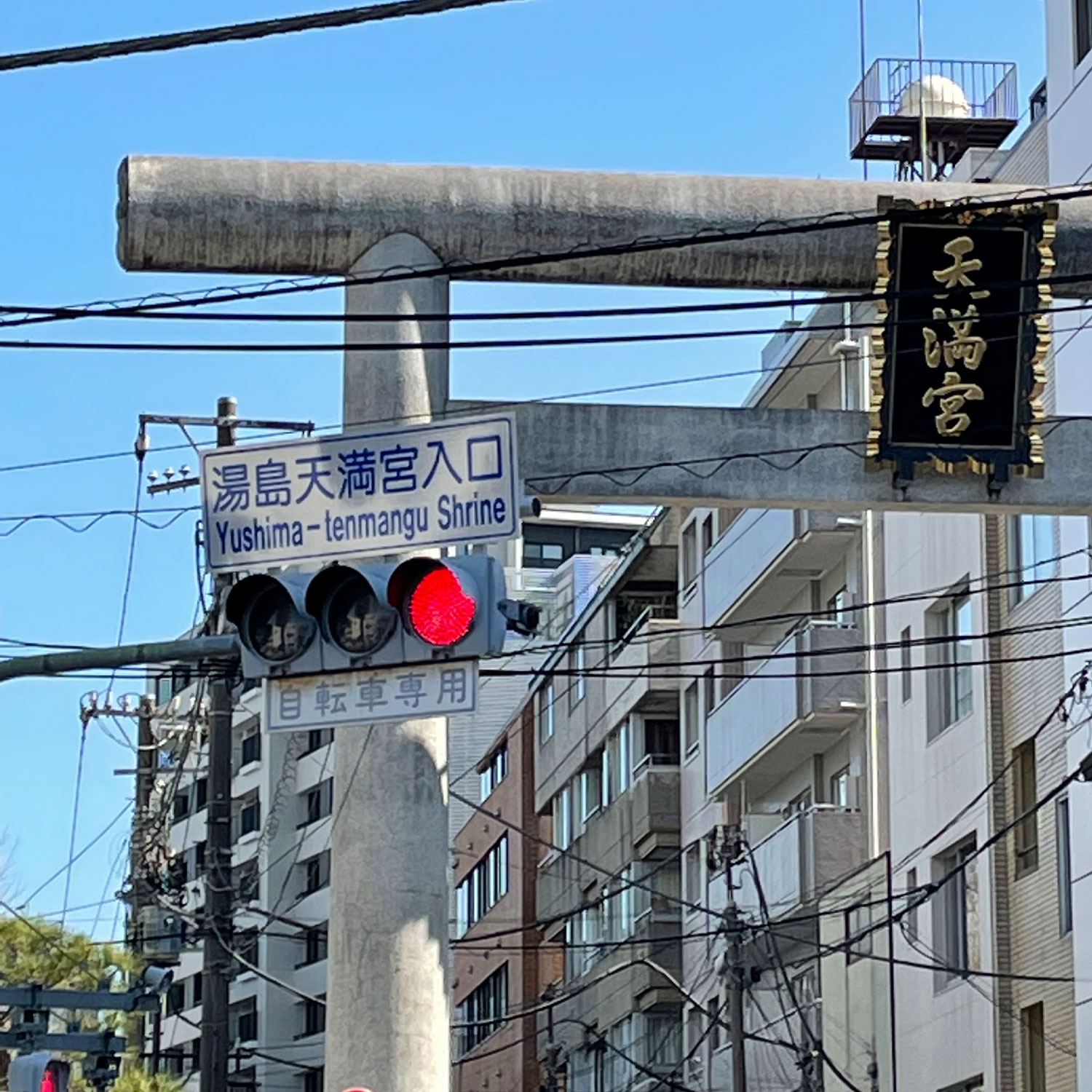 現状設置していた看板はありましたが、地元の町会長を始めとする方々からのご依頼をいただき、区に申請して名称を変え、「湯島天満宮入口」の看板を設置しました。